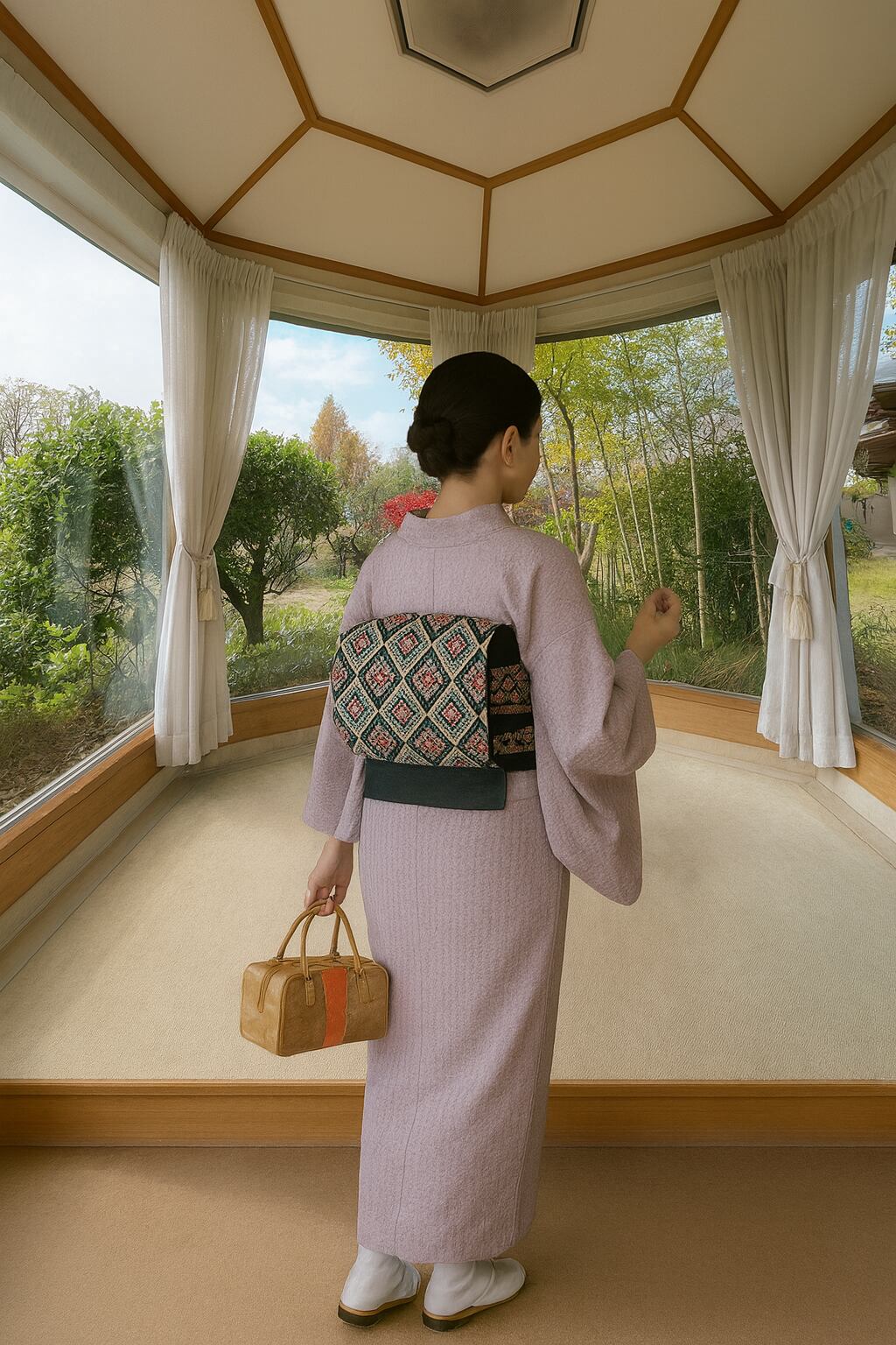 1. 「大正ロマンを纏う ― 菱取更紗の染帯、浜紬の上質な名古屋帯」