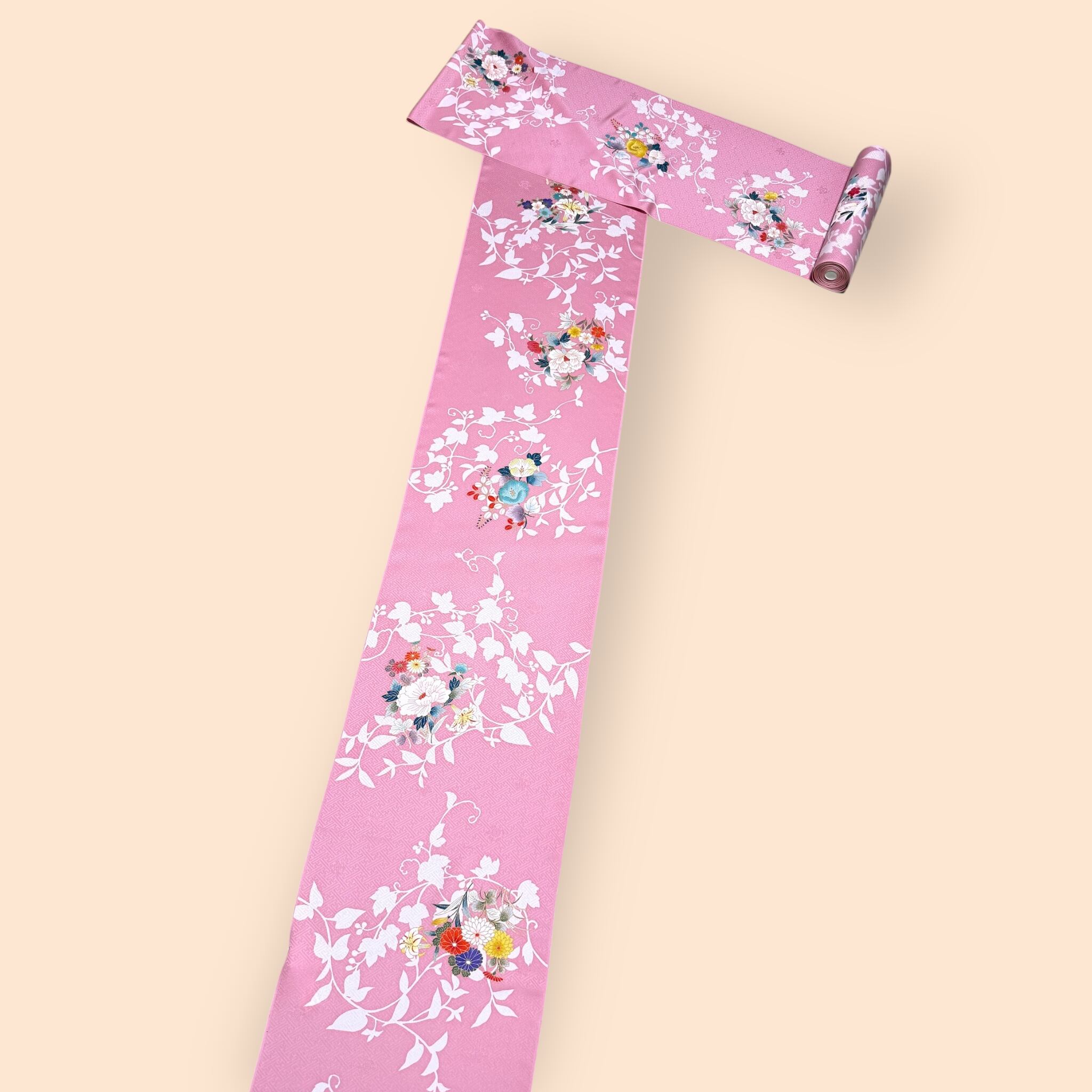 七五三の特別な日にふさわしい、優しいピンク地に繊細な小紋柄をあしらった正絹着尺。